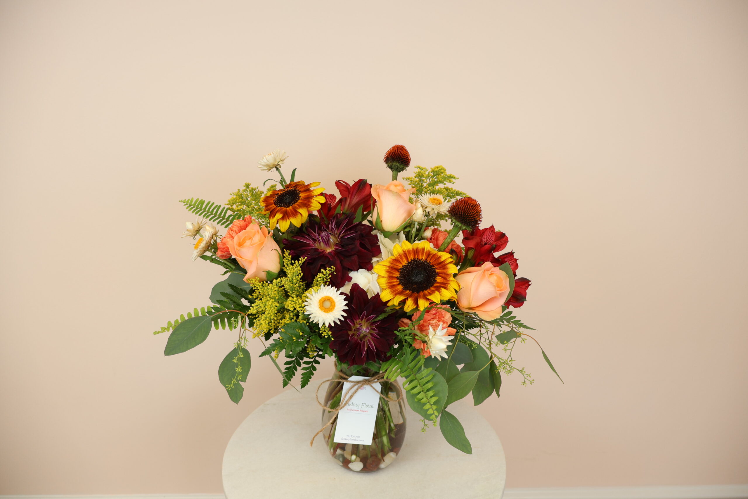 If you’ve ordered with us before or read any of our reviews, you know that one of the things that sets Fantasy Floral apart from other florists is our beautiful, artistic, unique designs! Ordering our Fall Designer’s Choice is truly the best option! Just let us know any favorite flowers or colors that you would like included (or excluded!) under the “Order Notes” section, and our designers will create a beautiful arrangement designed uniquely for your loved one!