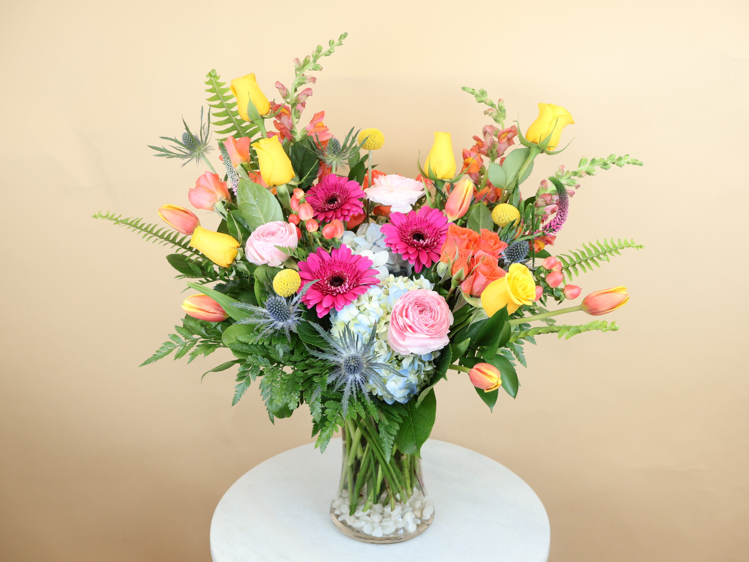 If you’ve ordered with us before or read any of our reviews, you know that one of the things that sets Fantasy Floral apart from other florists is our beautiful, artistic, unique designs! Ordering our Mother’s Day Designer’s Choice is truly the best option! Just let us know any favorite flowers or colors that you would like included (or excluded!) under the “Order Notes” section, and our designers will create a beautiful arrangement designed uniquely for your loved one!