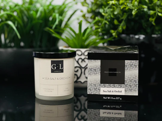 –Scented candle – (Choose one) Eucalyptus & Spearmint or Melon & Cucumber (by Grace+Love Candle Co., Sterling, VA)